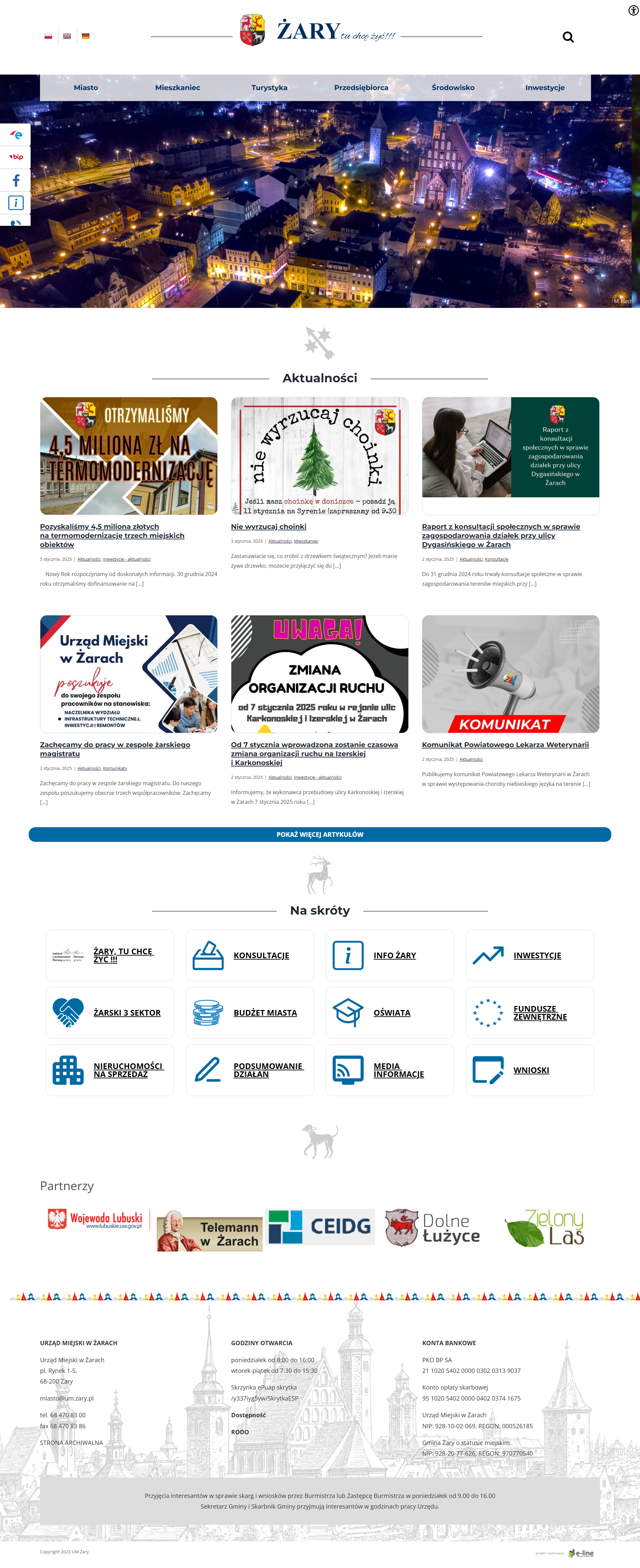 Strona została stworzona dla Urzędu Miasta Żary, aby prezentować lokalne inicjatywy oraz działania samorządu. Projekt łączy nowoczesny design z intuicyjną nawigacją, ułatwiając mieszkańcom szybki dostęp do istotnych informacji. Witryna jest w pełni responsywna, co zapewnia wygodne korzystanie zarówno na komputerach, jak i urządzeniach mobilnych.